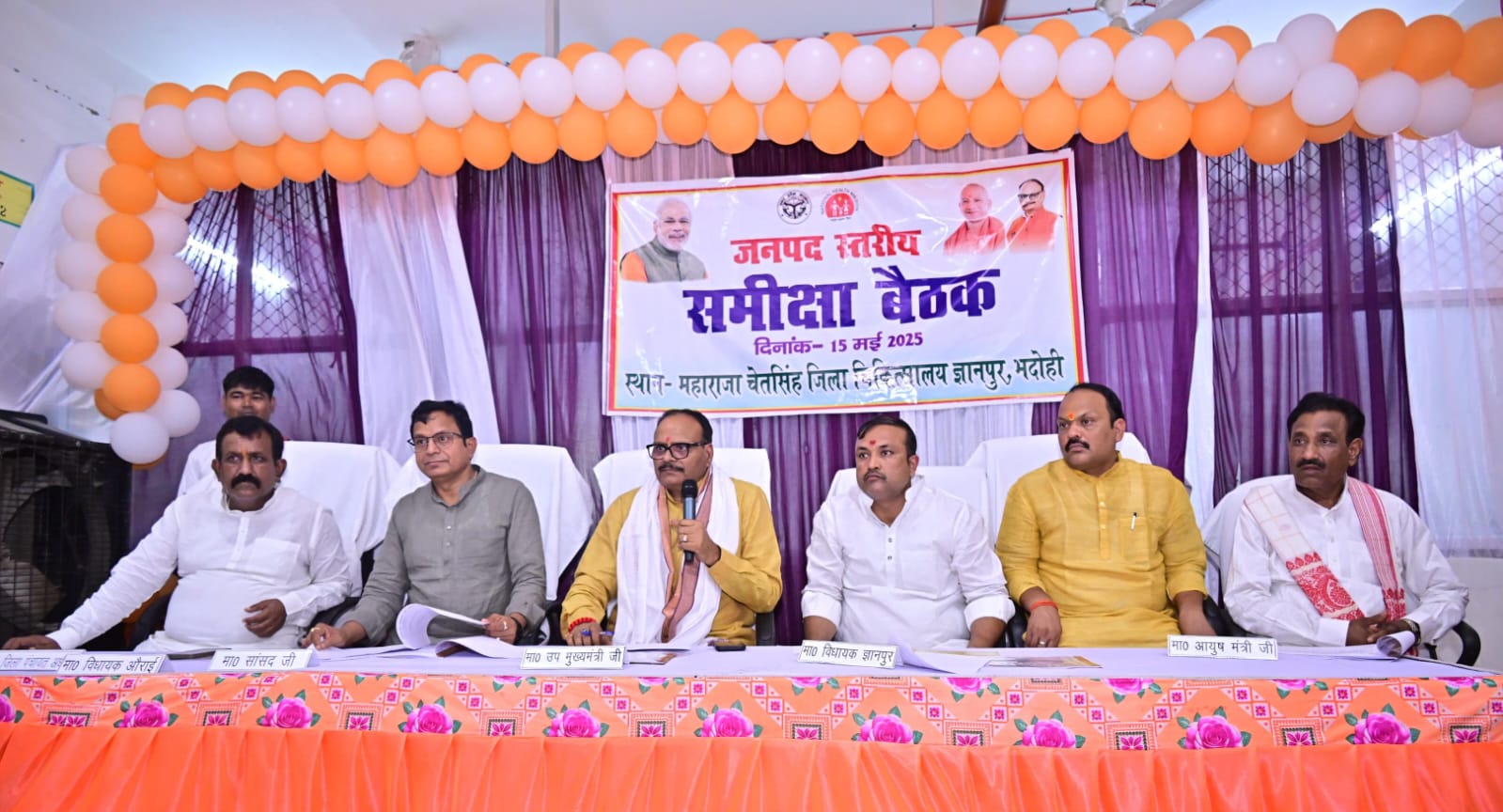 इससे पहले उपमुख्यमंत्री ने महाराजा चेतसिंह जिला अस्पताल ज्ञानपुर का निरीक्षण किया। उन्होंने स्वास्थ्य सेवाओं की समीक्षा बैठक में सीएमओ डॉ. संतोष चक को सही जानकारी न दे पाने पर फटकार लगाई। अस्पताल की व्यवस्था सुधारने के लिए कड़े निर्देश दिए। भदोही सांसद डॉ बिनोद बिंद ने सुलभ उपाध्याय सहित सभी वीर शहीदों को नमन किया । तत्पश्चात उन्होंने कहा कि पहले जो स्वास्थ्य सेवाएं वेंटिलेटर पर हुआ करती थी आज जिले ही नही बल्कि पूरे प्रदेश में नंबर एक पर चल रही है । कार्यक्रम में राज्यमंत्री दयाशंकर मिश्र ‘दयालु’, डीएम शैलेष कुमार, एसपी अभिमन्यु मांगलिक, सांसद डॉ. विनोद बिंद और विधायक विपुल दुबे समेत अन्य नेता व अधिकारी उपस्थित रहे।
