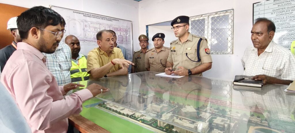 चंदौली । विशेष सचिव गृह राकेश कुमार मालपाणी द्वारा भोजापुर में बन रहे निर्माणधीन पुलिस लाईन का निरीक्षण किया गया।